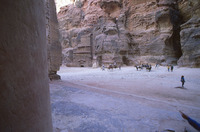 Jordan. Petra, View of Khaznet Far'oun (The Treasury) from the Siq