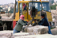 Jordan. Amman Citadel, Jabal Al Qala'a, during reconstruction of Temple of Hercules with site technical workers (?)