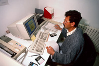 Jordan. Amman Citadel, Jabal Al Qala'a, during reconstruction of Temple of Hercules with site technical worker (?)