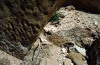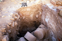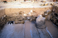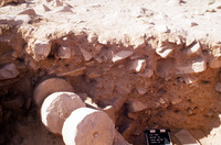 Before pre consolidation with Primal AC33 and lifting. View to east. Roll 2 - 11. - Sq. C1. Ashlar with plaster fragment (C1.15.AP1)