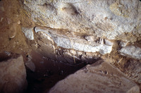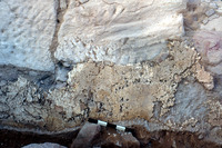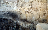 View to south. After removal of dirt and before cleaning and consolidation with Primal AC33. Roll 2 - 31. - Sq. B1. Section of north face of Wall A.