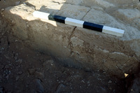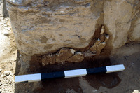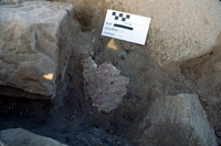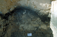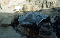 Boiling of bees wax for consolidation of wooden beam(locus 14). View to east. Roll 3 - - Sq. A1.