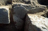 View to east. Before lifting of block. Roll 2 - 26. - Sq. A1. Ashlar with plaster fragment(A1.10.AP15).
