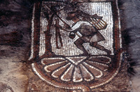 Sq. B1. Close up of mosaic depicting a fowler and his falcon for publication.