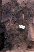 Charred wood. Aerial view to north. - Sq. B2. Locus 07.