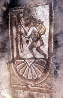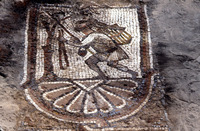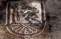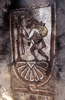 Sq. B1. Close up of mosaic depicting a fowler and his falcon for publication.