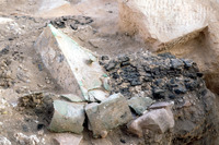 Iron object in-situ. View to south. - Sq. Locus 09/FN1.
