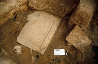 Marble in-situ. Close-up view to south. - Sq. Locus 29.