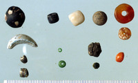 Studio. Beads. Scale mm's. Left to right of frame. D/H/K/L.E/I/M.F.G/J/N.A/B/C.