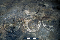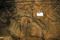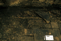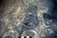 Shows salt damage to glass tesserae. View to east. - Sq. H4. Mosaic Rondelle
