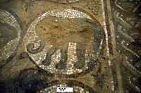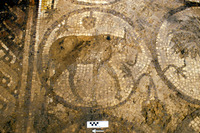 Mosaic - South Aisle. Marble replacement "Implants". Pre-wash. View to east.