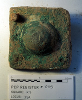 Reg #PCP.0114. Cu/Cu alloy door fitting w/iron nails. - Sq. K3. Studio. Locus 25A/Pail 60/FN1.