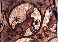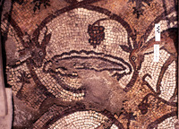 Mosaic depicting a peacock and an amphora- North Aisle