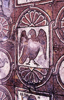 Mosaic depicting a bird - South Aisle. Row 2/# 1. - View to north.