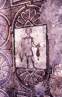 Mosaic depicting a fowler with his falcon - South Aisle. Row 2/# 7. - View to north.