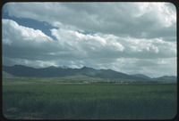 Village and snow cropped mountains before Hamadan