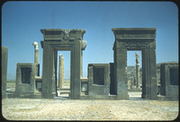 Entrance of palace zone: singed disc of Ahoura Mazda and lotus based column