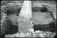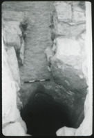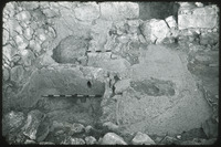 II looking W, Room M little plastered room, drain in r pit meter stick