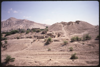 Hisham's Palace - workmen's quarters; Gilgal in background and refugee camp, mountain - Rash il gab