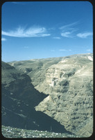 Greek Orthodox St. George monastery, Mt. Of Temptation in background; Roman aqueduct lower right side of wadi