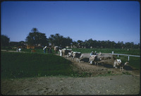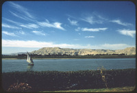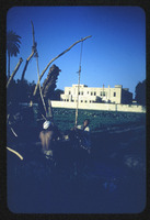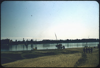 Luxor Temple across Nile with ferry and horse ferry in foreground