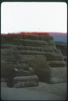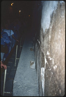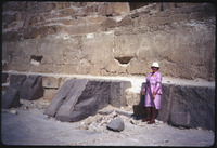 Luella standing by construction of pyramid - outer casing