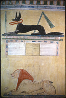 Paintings in Tombs of the Queens depicting Ramesses III and son before Anubis