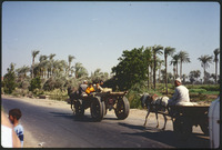 Horse and donkey pulling a wagon