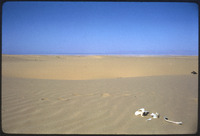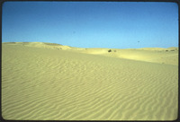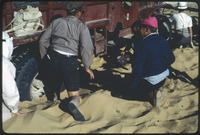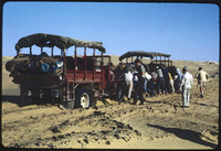 [Pushing trucks out of desert sand]