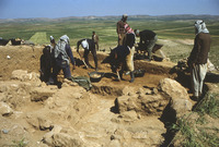Jordan. Tall er-Rumeith, Thomas Schaub and local workers surveying