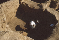 Jordan. Tall er-Rumeith, Marilyn Schaub sorting potsherds