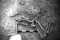 Jordan. Bab edh-Dhra', Cemetery A, Tomb A83. Looking west at articulated skeleton