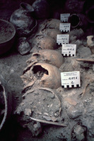 Jordan. Bab edh-Dhra', Cemetery A, Tomb A110NE. Articulated burials with remnants of cloth over female skeleton