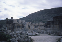 Jordan. Iraq al-Amir, looking south at east side of Qasr al-Abd and feline fountain