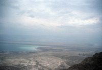 Jordan. Bab edh-Dhra', view across Dead Sea from Masada