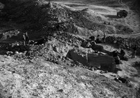 Jordan. Bab edh-Dhra' town site, Field I, excavating both inside and outside town wall