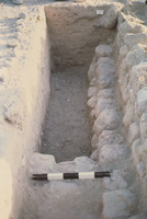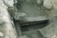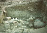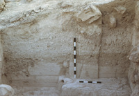 Jordan. Bab edh-Dhra‘ town site, Field XIV excavations, looking west at retaining wall to south post