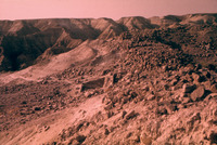 Jordan. Bab edh-Dhra‘ town site, Field XIII, west wall with Wadi Karak in background