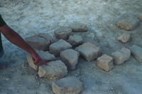 Jordan. Bab edh-Dhra‘ town site, Field XIII, David McCreery pointing at marked brick