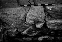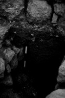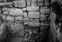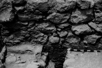 Jordan. Iraq al-Amir, square I.11, looking west at meter stick at bottom of first course showing bedrock and virgin soil below
