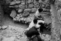 Jordan. Iraq al-Amir, square I.1.21. From top to bottom: Kathleen Kenyon, Roland de Vaux, Paul Lapp