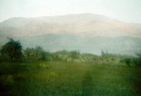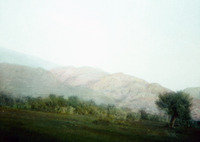 Jordan. Looking east at mountains of M.N. (Mount Nebo?), fields of grain in foreground