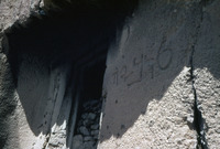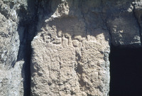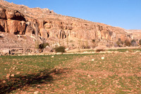 Jordan. Iraq al-Amir, looking at first "Tobiah" cave from camp. Inscription visible in center