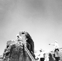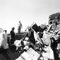 Jordan. Iraq al-Amir, Paul Lapp and workers at tumble of blocks