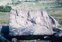 Jordan. Iraq al-Amir, lion outline on block turned over at north end of Qasr al-Abd