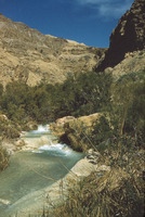 Jordan. Wadi Zarqa Ma‘in, looking east. Near entrance to Dead Sea