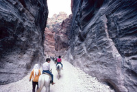 Jordan. Petra, Khaznet Far'oun (Treasury) from Siq