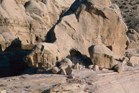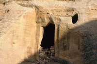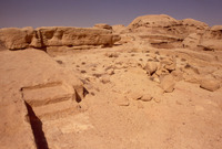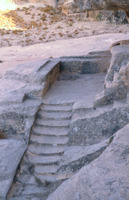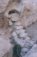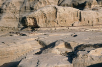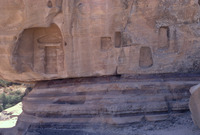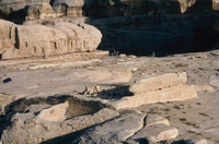 Jordan. Petra, al-Madras, niche (above), rock-cut reservoir (below)