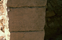 Jordan. Tafilah, Buseira, "Recycled" Greek Inscription, turned upside down, on an arch of an Ottoman Building at Busayra