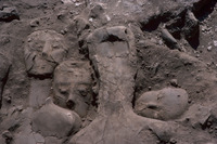 Jordan. Amman, Ain Ghazal, the upper layer of the cache of plaster human statues and busts, with Marci Donaldson